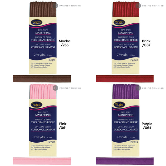 Wrights Maxi Piping Bias Tape 1/2" Multiple Colors