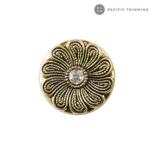 Flower Patterened Metal with Rhinestone Shank Button